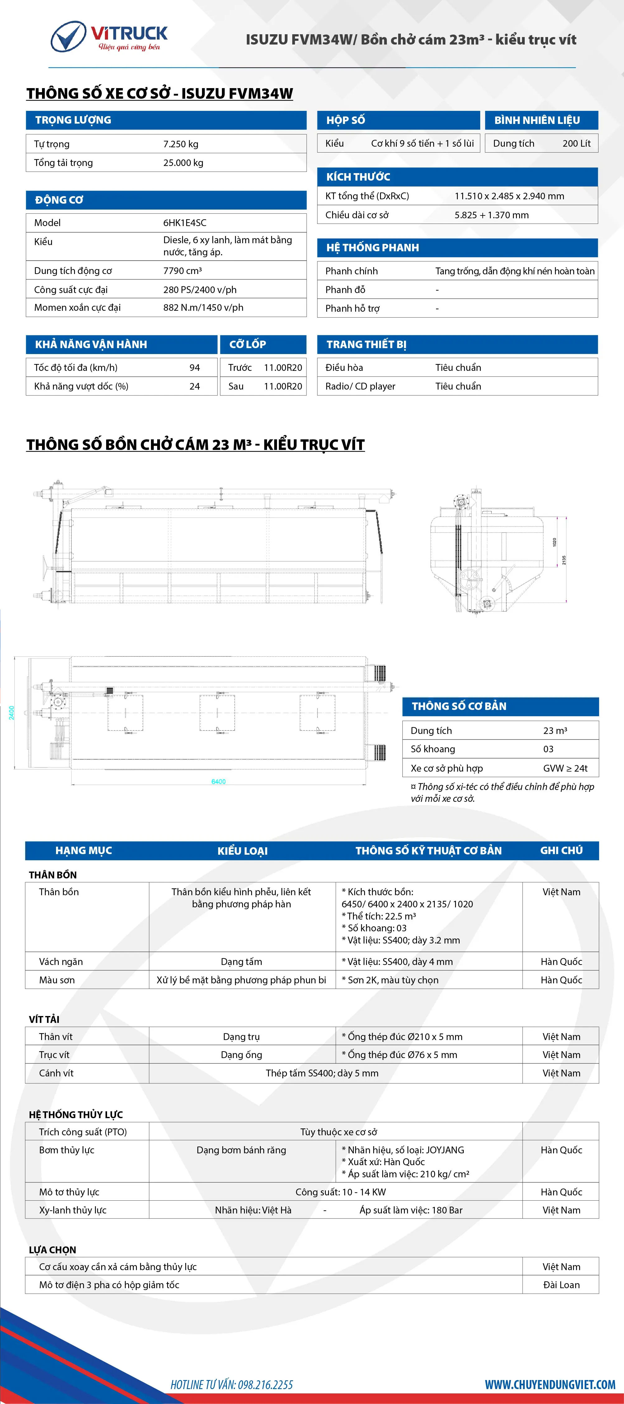 Xe chở cám Isuzu 15 tấn kiểu trục vít (FVM34W)