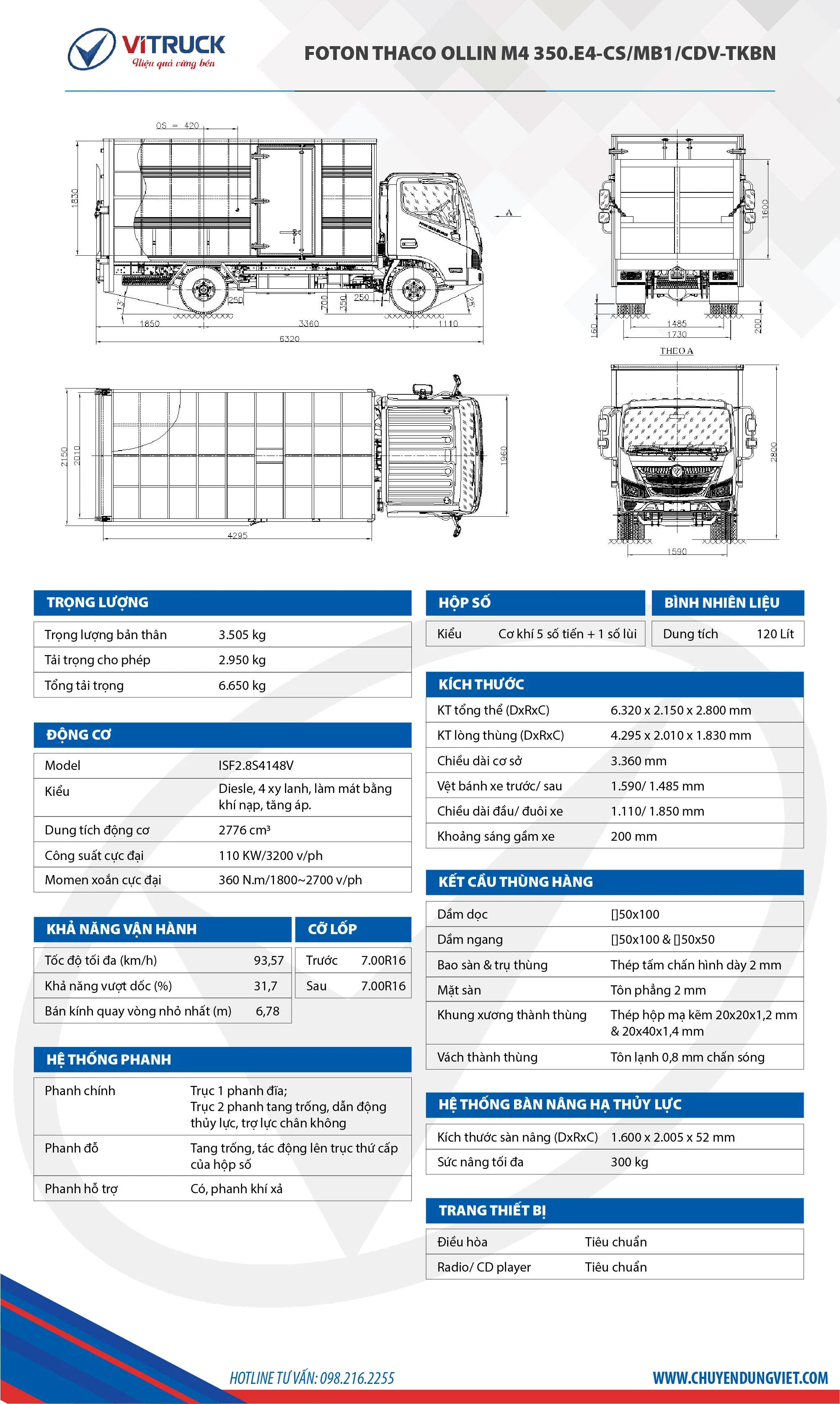 • Xe cơ sở: Foton Thaco M4 350 (Euro 4)